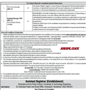 1 PS to Vice Chancellor 01 BPS-17 First division Master’s degree in Human Resource Management/Business Administration/Economics/Agricultural Economics with 5 years secretarial experience in University or Government Department or Autonomous Organization